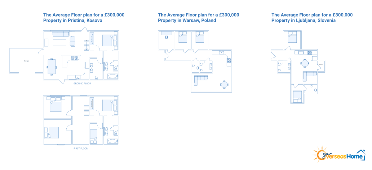 As of November 2022, the UK government reported that the average property in the UK was valued at £294,910 – just shy of £300,000. So, we wanted to see what the same amount of money would get you in capital cities around Europe.