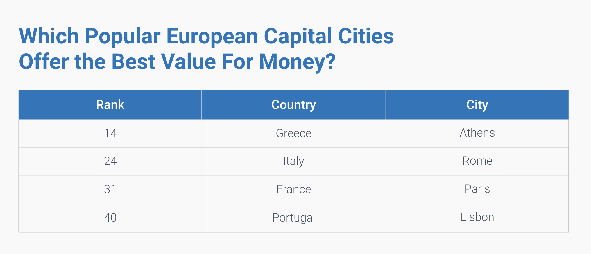 Moving abroad? Which popular European capital cities offer the best value for money?